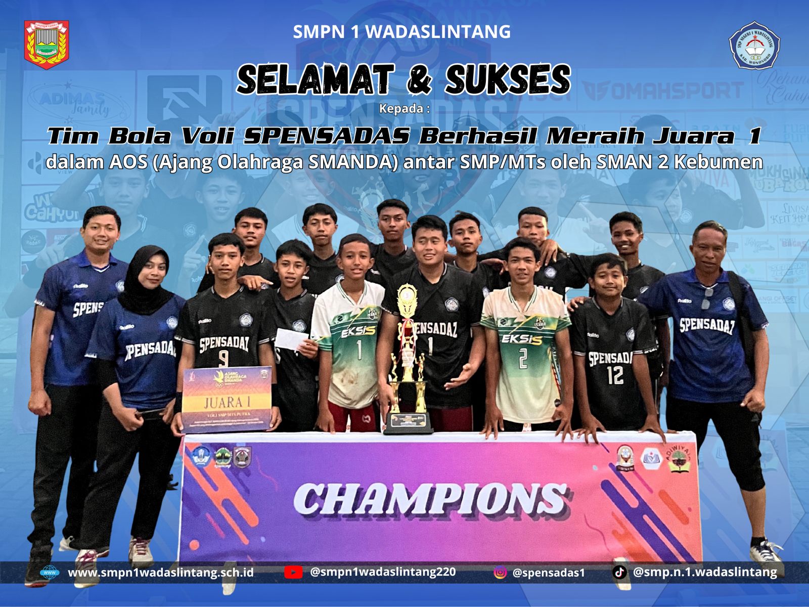 Akhir kata, kami mengucapkan terima kasih atas dukungan semua pihak dalam kemajuan SMP Negeri 1 Wadaslintang. Semoga kehadiran website ini membawa manfaat dan menjadi media sinergi yang positif bagi semua elemen pendidikan.